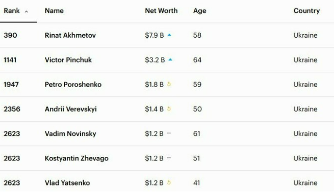 Знайшлося місце в ньому і найзаможнішим українцям, список яких очолив президент донецького Шахтаря Рінат Ахметов. Власник "гірників" розташувався на 390-й сходинці загального рейтингу, збільшивши свій статок протягом 2024 року вдвічі. Таким чином зараз він складає 7,9 млрд дол.