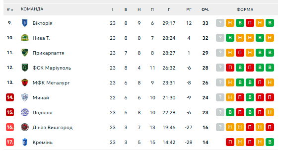 Діназ, який очолює легендарний оборонець Динамо та збірної України Олександр Головко, розписав нічию з Прикарпаттям і втратив шанси на виживання. Також у Другу лігу вилетів Кремінь після поразки від Поділля.