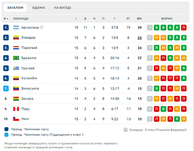 Аргентина здобула непросту перемогу над Чилі (1:0). Єдиний, відтак вирішальний матч у дебюті зустрічі забив Хуліан Альварес. Ліонель Мессі з'явився на полі на 57-й хвилині, але результативними діями не відзначився. "Альбіселесте" продовжують впевнено лідирувати у турнірній таблиці – вони ще у березні забезпечили собі путівку на Мундіаль-2026.