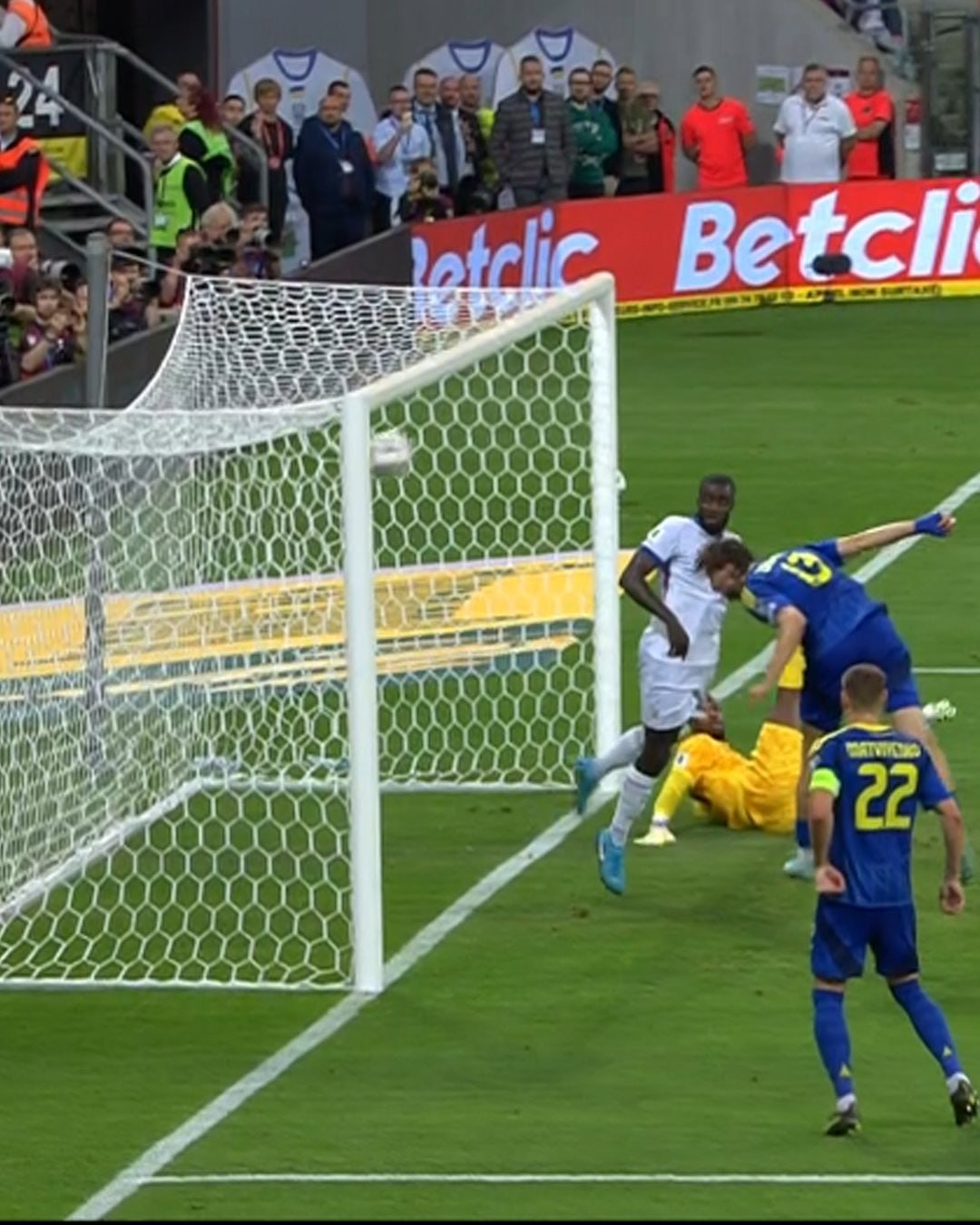 На 65-й хвилині Конопля віддав на Гуцуляка, той протягнув м'яч по лінії штрафного і віддав на Зубкова. Олександр ефектно прокинув далі на Зінченка і той навісив на дальню стійку, де замикав Довбик. Не пощастило – Конате виніс сферу з воріт. За мить Забарний замикав закидання від Калюжного і влучив у стійку! Французи не очікували такого шквалу атак і виглядали розгубленими.