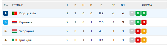 Таким чином, Португалія завершила вересневий збір із максимальною кількістю очок, а Угорщина має в активі один бал.