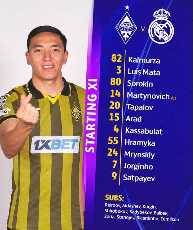 Стартовий склад Кайрата: Калмурза – Мата, Сорокін, Мартинович, Тапалов – Арад, Кассабулат, Грамика, Мринський – Жоржиньо, Сатпаєв