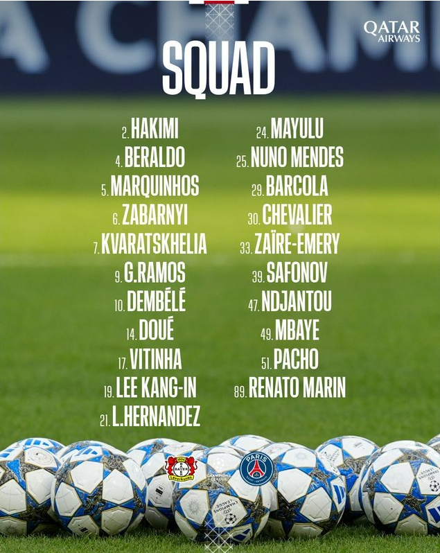 21 футболіст потрапив до заявки ПСЖ на матч Ліги чемпіонів проти Байєра. Потрапив до цього списку і захисник збірної України Ілля Забарний.