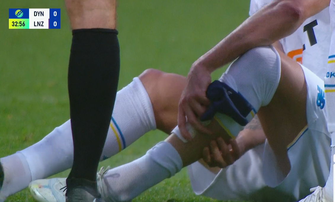 На 33 хвилині лідер киян сів на газон й тримався за литковий м'яз. Після цього він попросив про заміну. Замінив Ярмоленка Едуардо Герреро.