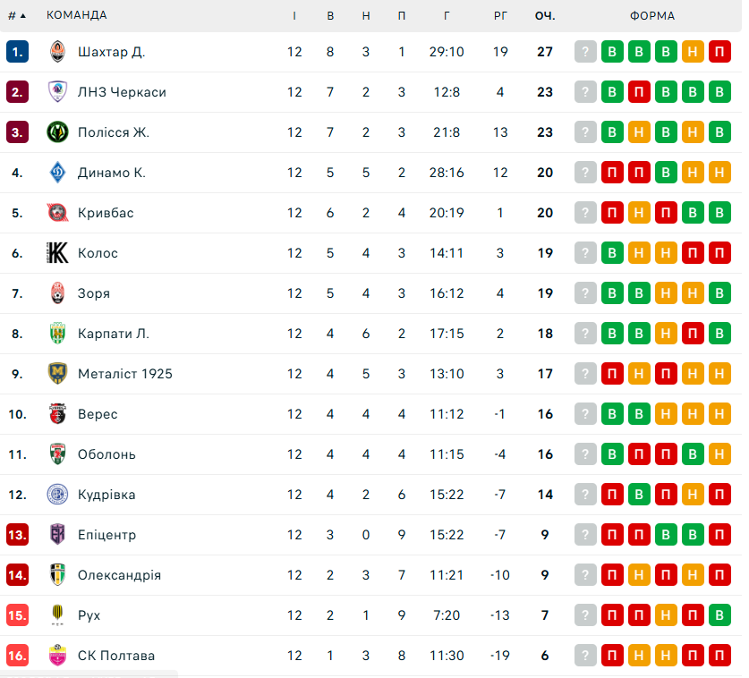 Українські гранди по-різному зіграли свої матчі туру. Динамо програло прямому конкуренту за друге місце в таблиці ЛНЗ із рахунком 0:1 і опинилися за бортом топ-3. Наразі у підопічних Олександра Шовковського 20 балів, а у черкащан – 23.