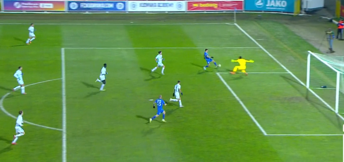 Найбільш активним у першому таймі був Волошин. Саме він створив другий гол, майстерно перекинувши воротаря. Після його удару м'яч найімовірніше залітав у сітку, але Пономаренко вирішив не ризикувати і добив у порожні.