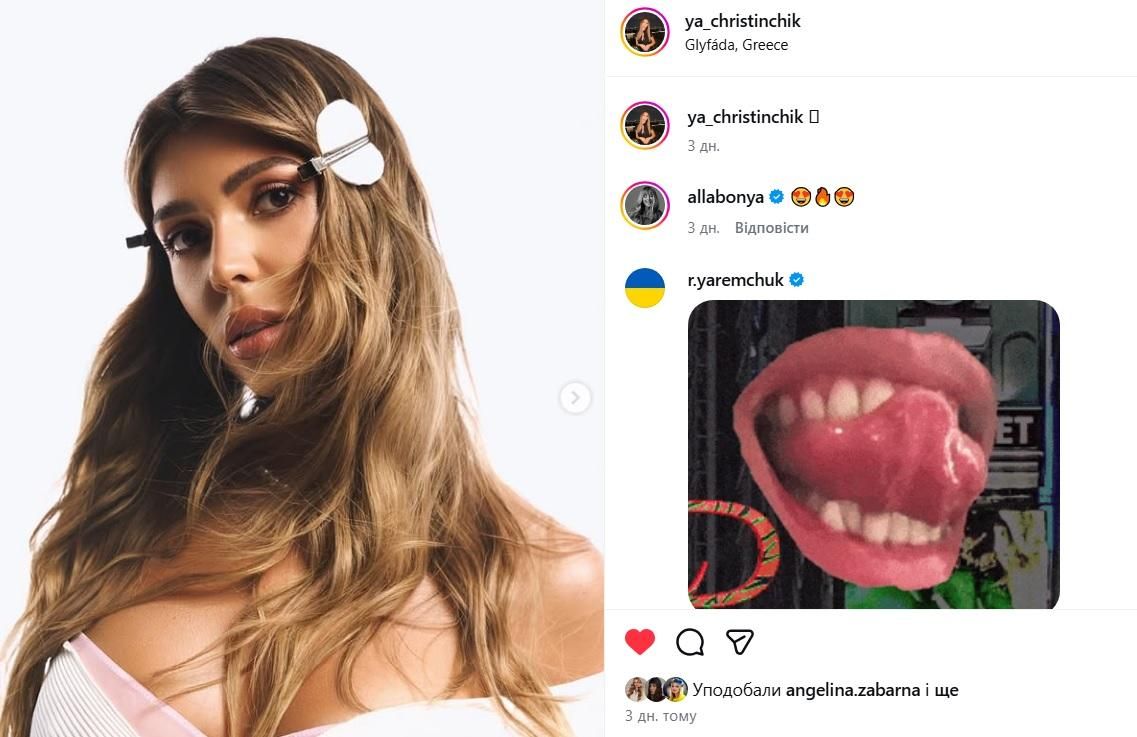 Христина позує у короткому топі та міні, притягаючи до себе захоплені погляди фанатів. Серія пікантних кадрів викликала справжній ажіотаж, а зірка збірної України Роман Яремчук не стримав емоцій і залишив під публікацією емоджі з висунутим язиком.