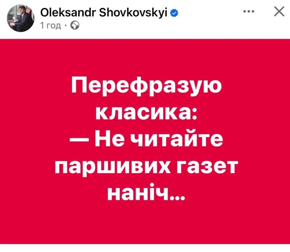 На тлі цих чуток Шовковський опублікував допис на своїй сторінці у Facebook. "Перефразую класика: – Не читайте паршивих газет на ніч", – написав екс-наставник киян.