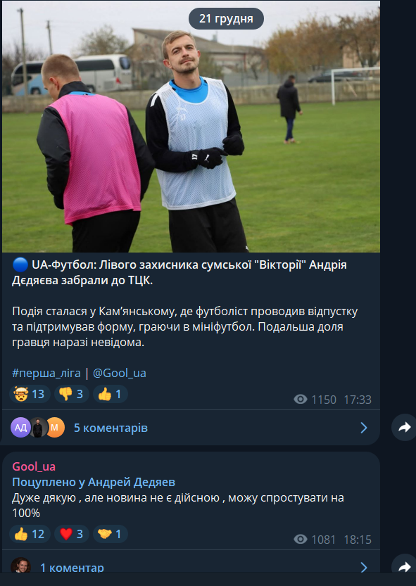 "Дуже дякую, але новина не є дійсною, можу спростувати на 100%", – написав Дєдяєв для Gool.ua.