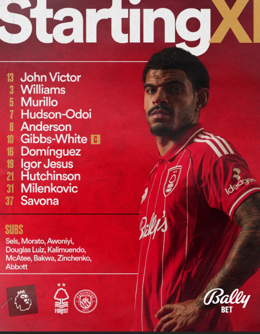 Ноттінгем Форест: Джон Віктор, Вільямс, Мурілло, Хадсон-Одой, Андерсон, Гіббс-Вайт (к), Домінгес, Ігор Жезус, Хатчінсон, Міленковіч, Савона.