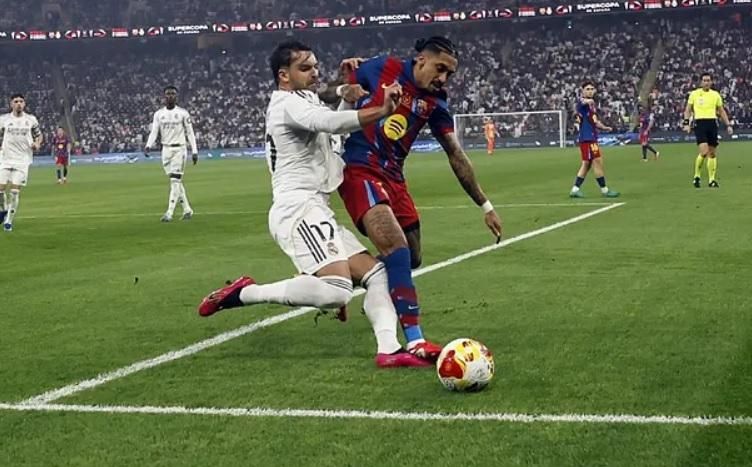 Поступово Барселона повернула собі ініціативу. Ямаль з вбивчої позиції вліпив у Куртуа, однак на 73-й хвилині кіпер Реала був безсилий. Рафінья оформив дубль завдяки рикошету від Асенсіо, який тінню переслідував його весь матч – 3:2.