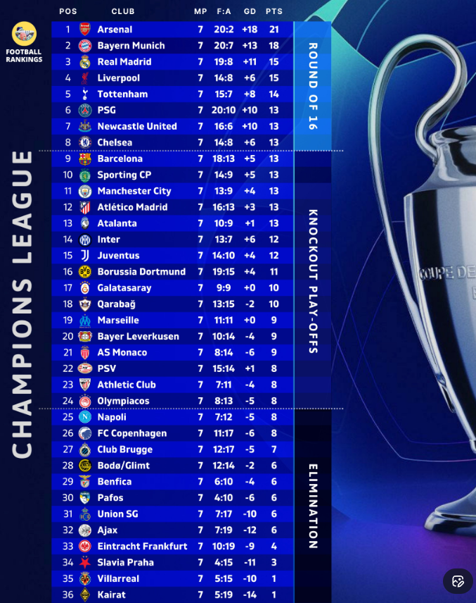 Андрій Лунін вже майже в 1/8 фіналу – Реал йде третім і лише дивом може зіпсувати собі настрій. Ілля Забарний разом з ПСЖ посідає шосту сходинку, але може вилетіти з топ-8. Парижани закриють груповий етап матчем з Ньюкаслом.