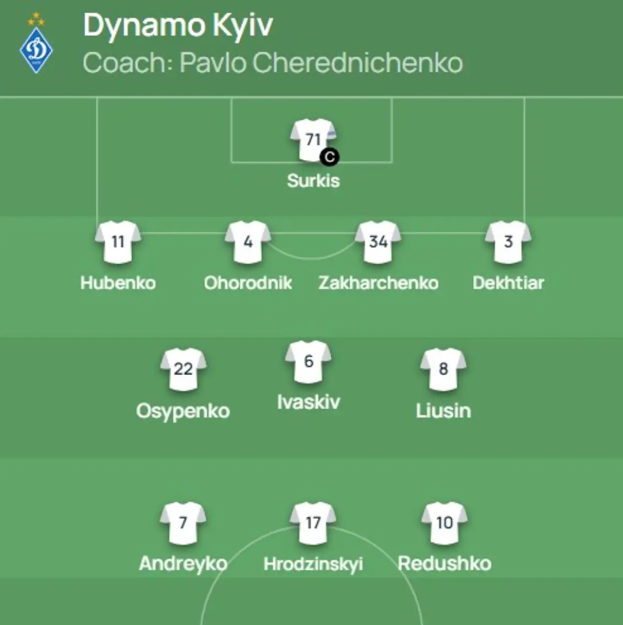 Динамо U-19: Суркіс (к) – Губенко, Огороднік, Захарченко, Дехтяр – Осипенко, Іваськів, Люсін – Андрейко, Гродзінський, Редушко