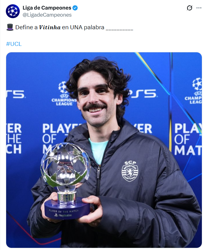 На офіційній сторінці організації з'явилася публікація з фото футболіста та підписом "Опиши Вітінью одним словом".