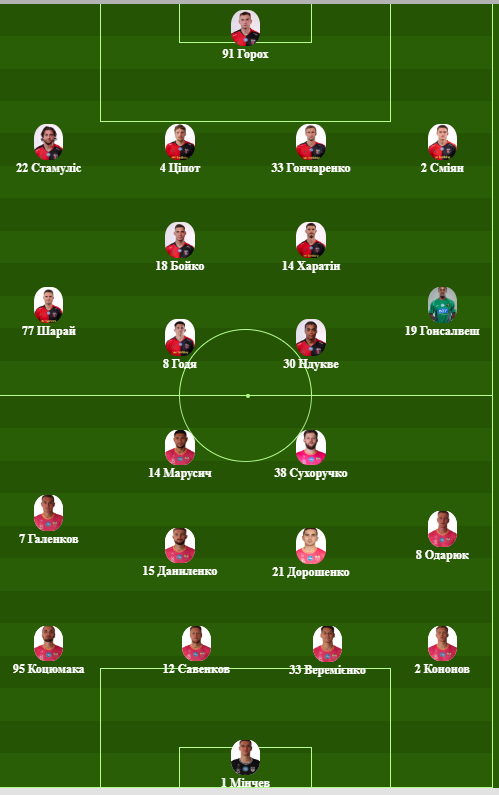 Верес: Горох, Стамуліс, Ціпот, Гончаренко, Сміян, Бойко, Харатін, Шарай, Гонсалвеш, Годя, Ндукве