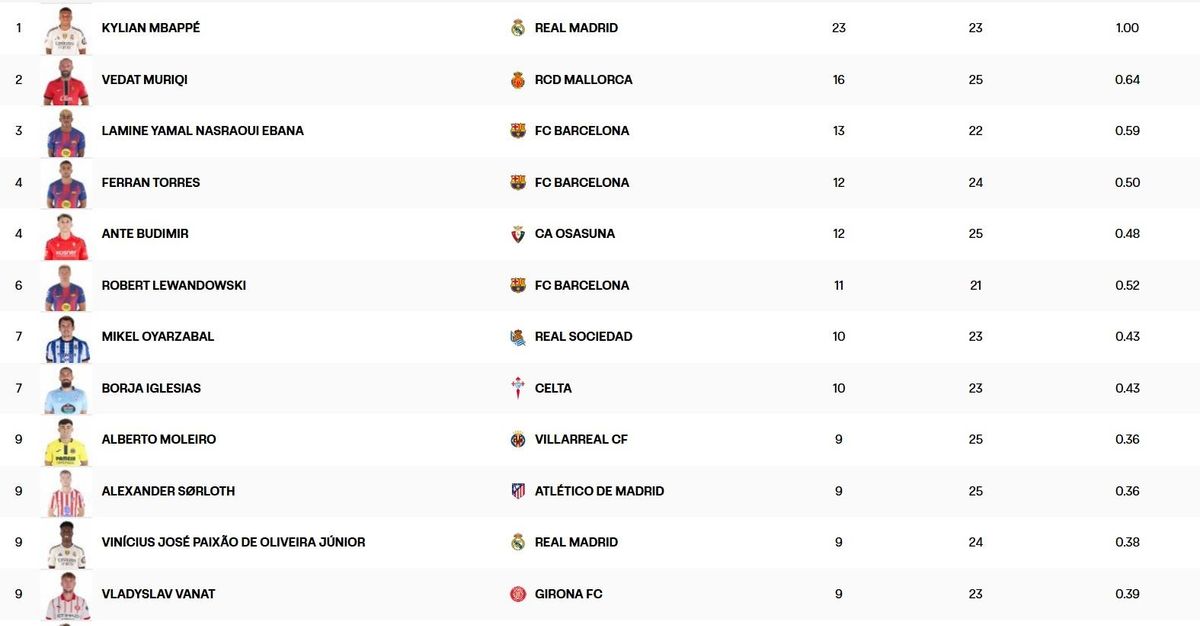 Топ-рейтинг бомбардирів Ла Ліги: