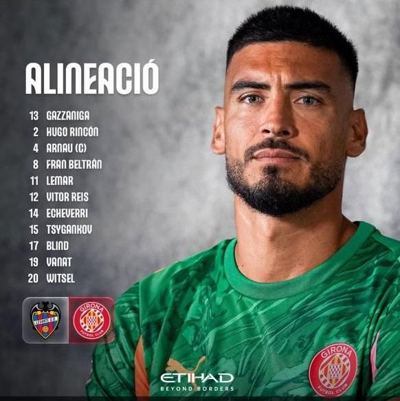 Стартовий склад Жирони: Гассаніга – Рінкон, Арнау, Рейс, Блінд – Бельтран, Вітсель – Циганков, Ечеверрі, Лемар – Ванат