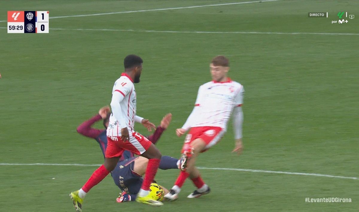 Другий тайм для Жирони розпочався із шоку. Карлос Еспі, 20-річний гігантський нападник Леванте, протиснув Блінда і головою замкнув подачу з флангу, відкривши рахунок у матчі.