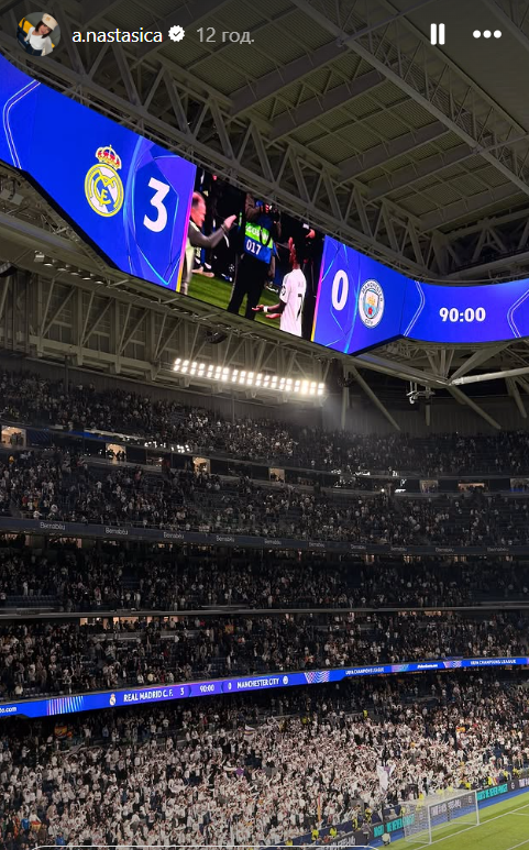 Дружина Андрія Луніна вболівала за мадридців з трибун Сантьягу Бернабеу і особисто прожила неймовірний переможний вечір у Мадриді.
