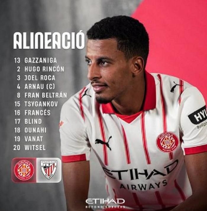 Жирона: Гассаніга – Рінкон, Франсес, Блінд, Арнау – Вітсель, Бельтран – Циганков, Унахі, Рока – Ванат
