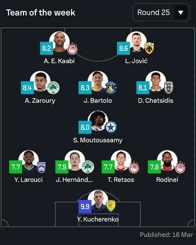 Кучеренко видав 6 сейвів, фактично запобігши щонайменше двом голам у ворота своєї команди, що принесло йому місце у символічній збірній туру чемпіонату Греції.