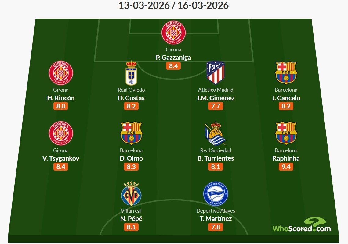 Циганков – не єдиний представник Жирони в символічній команді туру. Воротар Пауло Гассаніга (8.4) і захисник Уго Рінкон (8.0) також потрапили до переліку кращих.