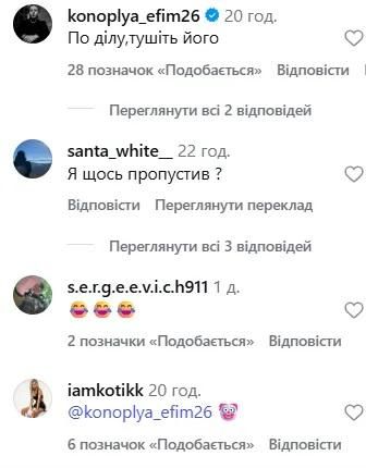 26-річний футболіст відреагував на допис, у якому його назвали "чортом", закликавши "тушити" того, хто поширює наклейки. Свою реакцію також залишила дружина Коноплі, додавши під постом емодзі "клоуна".