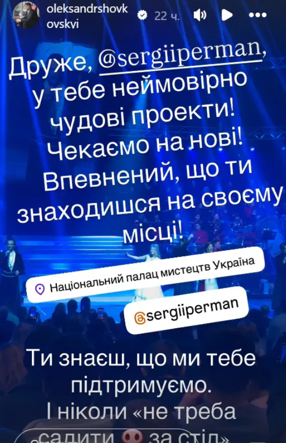 Шовковський став на бік Пермана і звернувся до нього, опублікувавши сторіз в Instagram.
