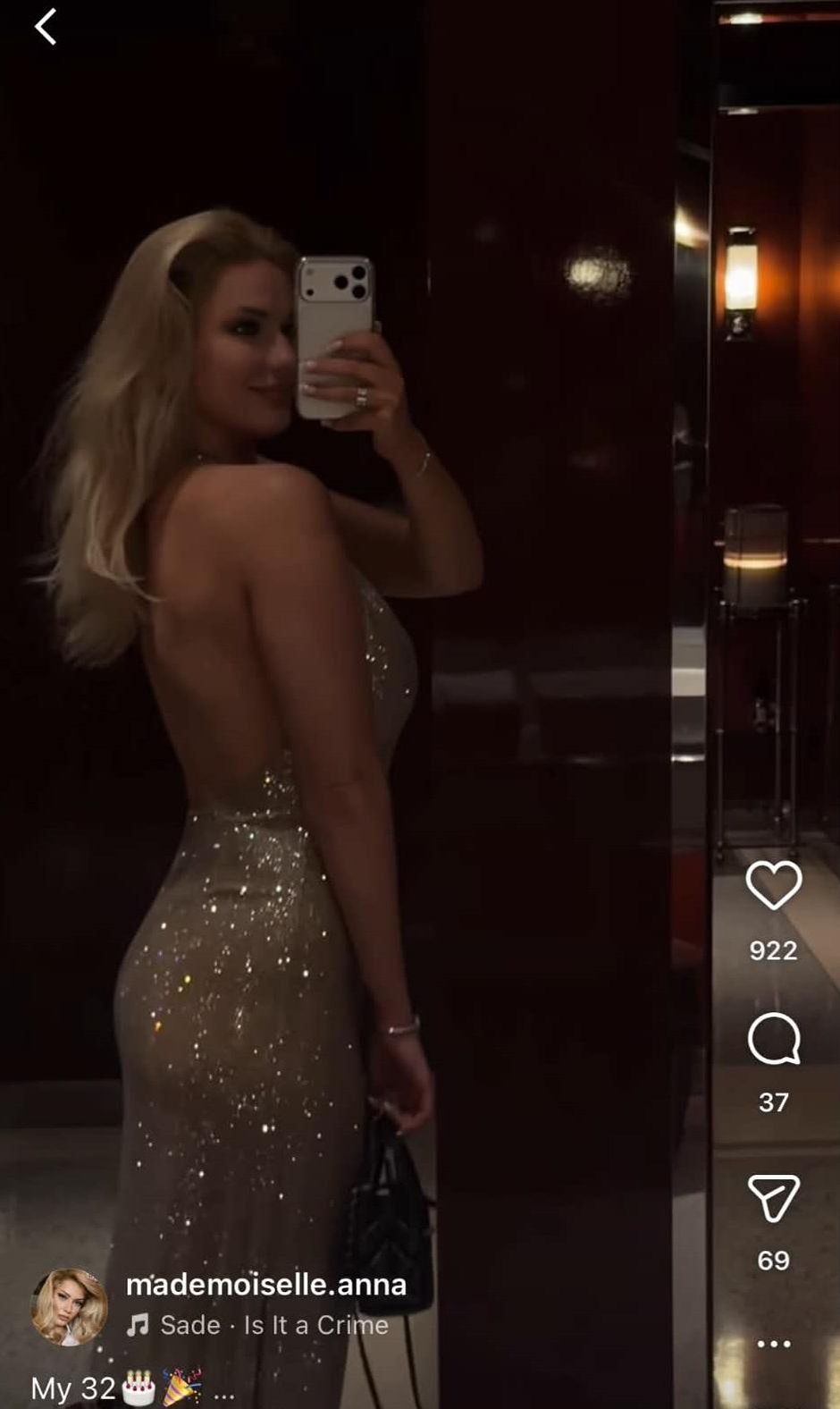 Анна Зубкова на своїй сторінці в Instagram показала образ, в якому зустріла 32-річчя. Вона обрала сріблясту вечірню сукню з лелітками та ефектник макіяж.