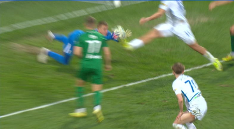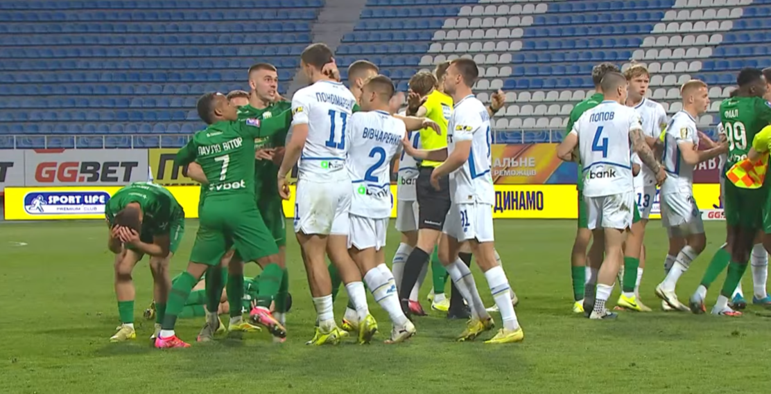 Найгарячіше було під завісу матчу. Черговий матч Динамо не обійшовся без скандалу. Пономаренко поцупив м'яча у Домчака, який не зміг його зафіксувати після удару Бражка, і зрівняв рахунок. На повторах видно, що Матвій не фолив проти воротаря, але судді скасували гол після перегляду VAR, викликавши бурхливу іронічну посмішку Ярмоленка.
