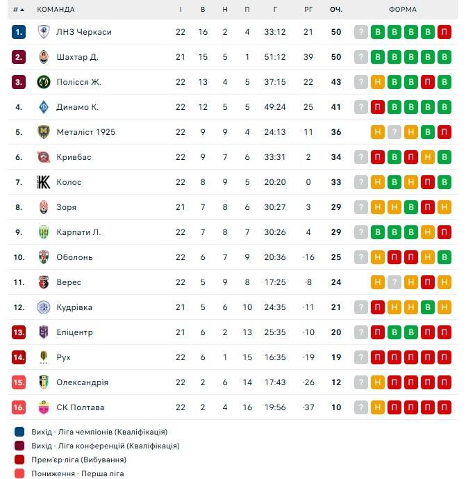 Шахтар завдав розгромної поразки Руху – 3:0. Таким чином у "гірників" зараз 50 очок – вони йдуть на другому місці у чемпіонаті України. З такою самою кількістю пунктів за додактовими показниками лідирує ЛНЗ. Черкасці у 22-му турі розтрощили Кривбас – 3:0.