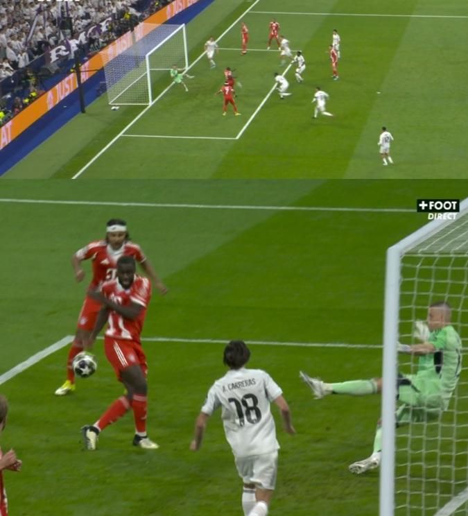 Чуамені отримав жовту картку за безглузде порушення та пропустить матч-відповідь у Мюнхені. Втім, у Реала вдосталь проблем і сьогодні. На 41-й хвилині мадридців не врятувало ніщо. Вінісіус обрізався в центрі поля, Баварія кількома передачами доставила м'яч до Діаса, який спокійно розібрався з Луніним. У фінальній фазі провалились флангові захисники "вершкових" – Каррерас потягнув лінію офсайду, а Трент без шансів програв вривання екс-партнеру по Ліверпулю.
