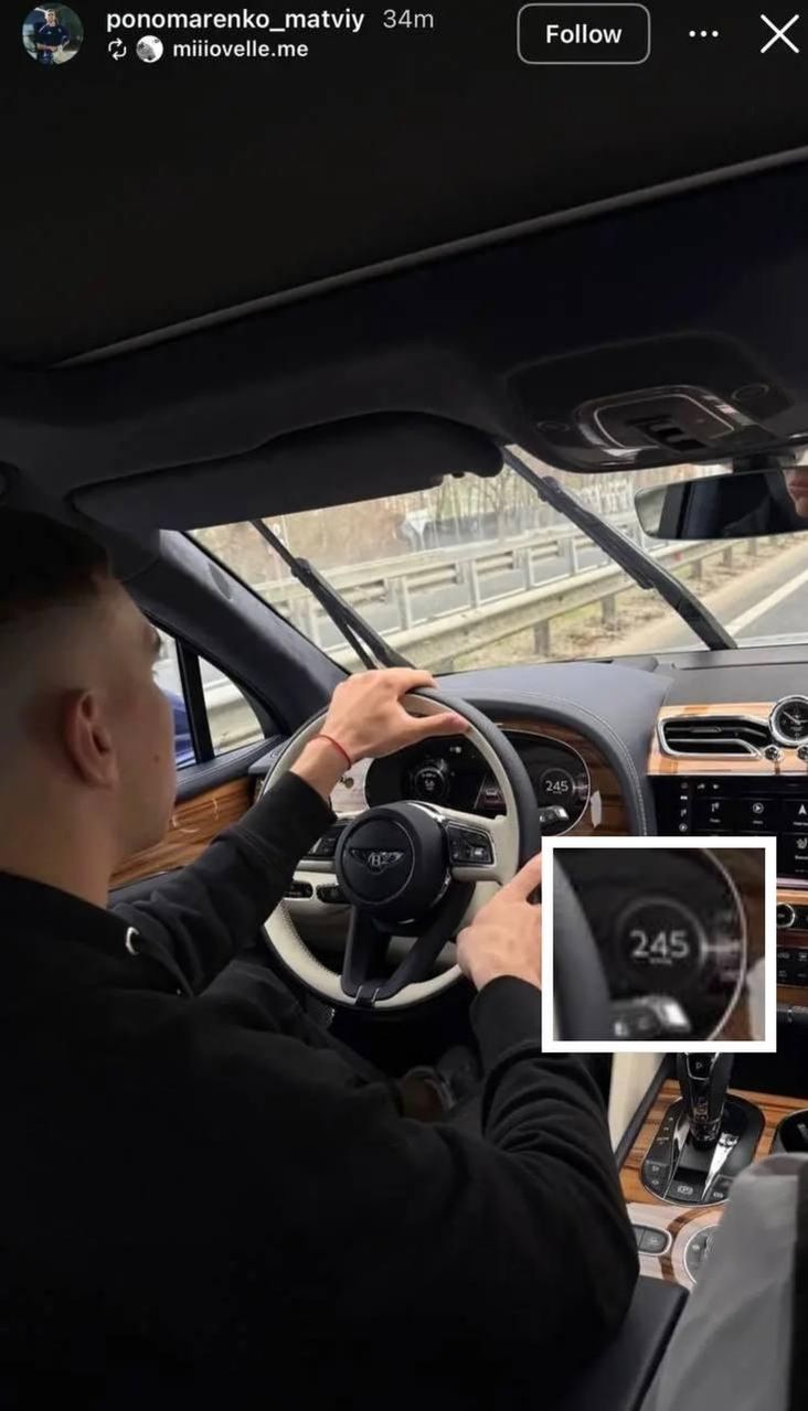 Перевищення швидкості 20-річним футболістом одразу розлетілося мережею, тож Пономаренко швиденько вирішив видалити свою stories.