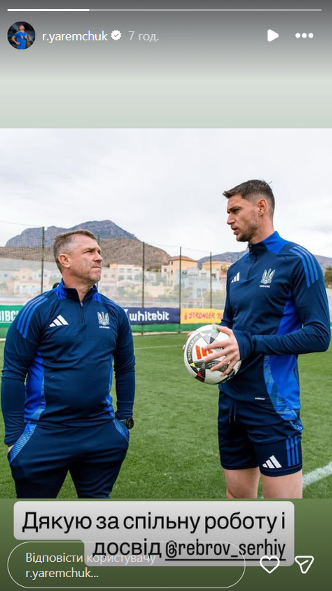 Сергій Ребров покинув посаду головного тренера збірної України 22 квітня. "Синьо-жовтим" не вдалося кваліфікуватися на ЧС-2026. Нападник Ліона Роман Яремчук вирішив підтримати екс-тренера та побажав йому успіхів.