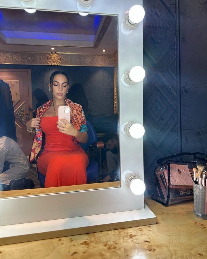 Доки португалець отримує жовті картки за неспортивну поведінку, Джорджина вражає своїх шанувальників розкішними образами для фотосесій. Зокрема, в останній з таких, модель позувала в облягаючому червоному платті, що виразно підкреслювало форми обраниці Роналду.