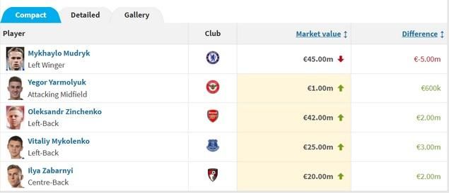 Зінченко, Забарний та Миколенко зберегли свою вартість – 42 млн, 20 млн та 25 млн відповідно. А от єдиним українським легіонером, який подорожчав, став Єгор Ярмолюк. Його ціна зросла на 600 тисяч євро. Тепер півзахисник Брентфорда коштує 1 мільйон. До слова, Ярмолюк досі не дебютував в АПЛ за дорослу команду "бджіл". Єгор взяв участь лише у матчі Кубка футбольної ліги.