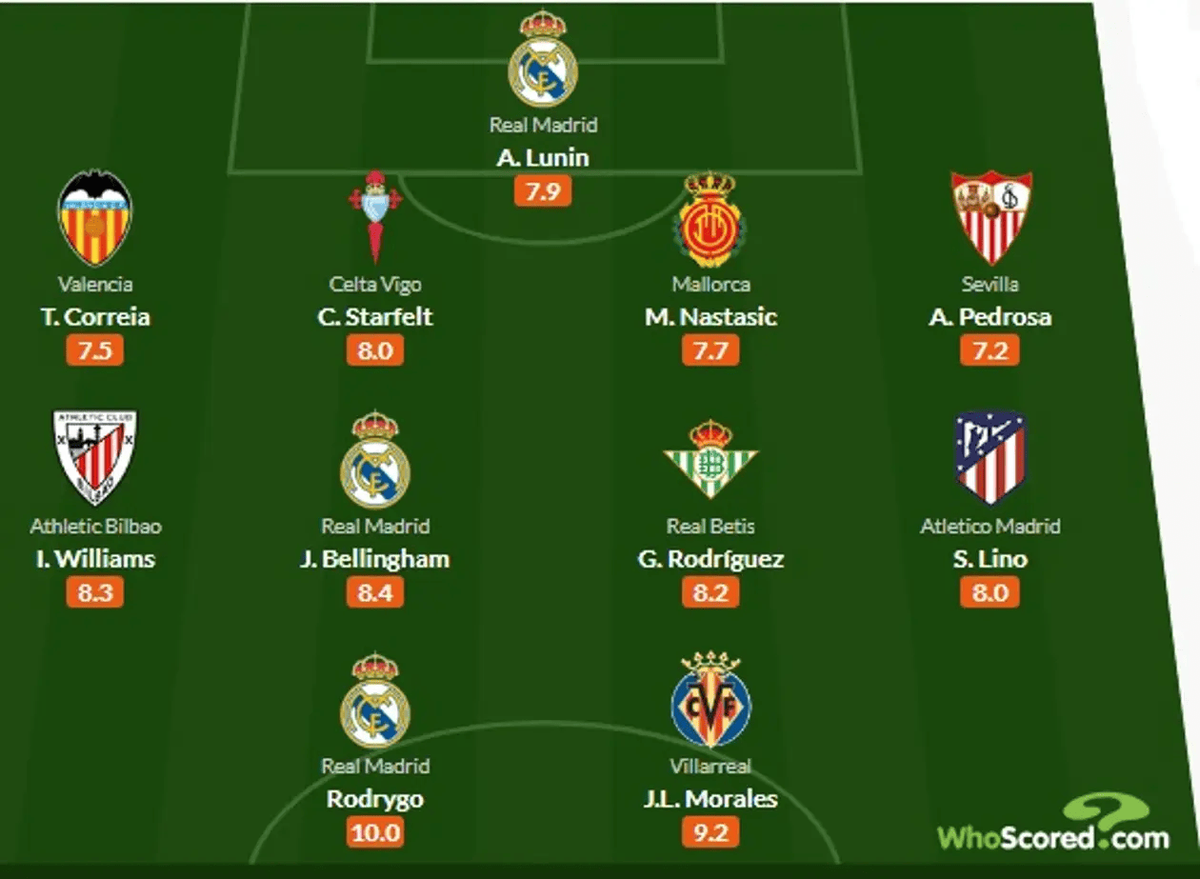 Додамо, що серед партнерів Луніна в символічній збірній туру за версією статистичного порталу WhoScored опинилися Джуд Беллінгем та Родріго.