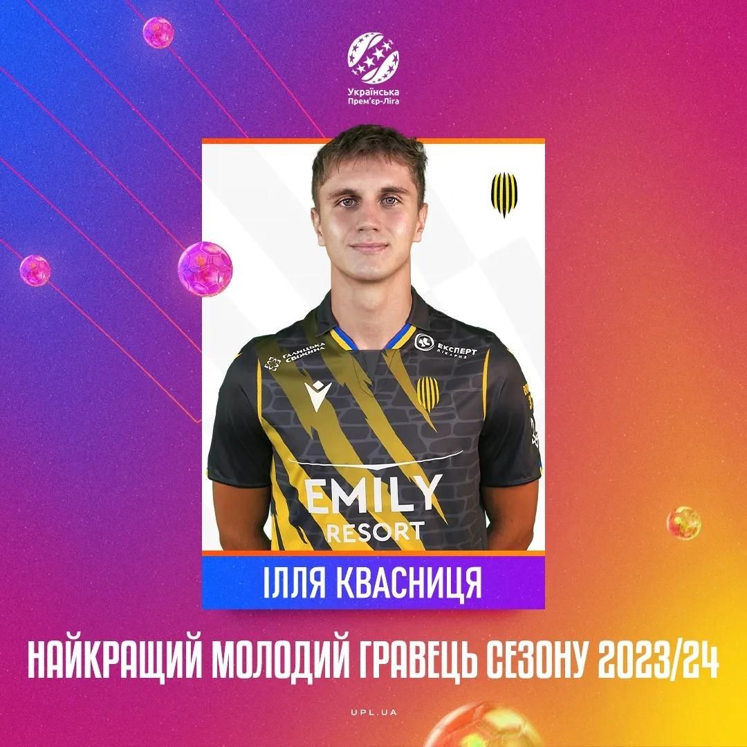 Найкращим молодим гравцем сезону 2023/24 став вінгер Руха Ілля Квасниця, повідомляє прес-служба УПЛ.