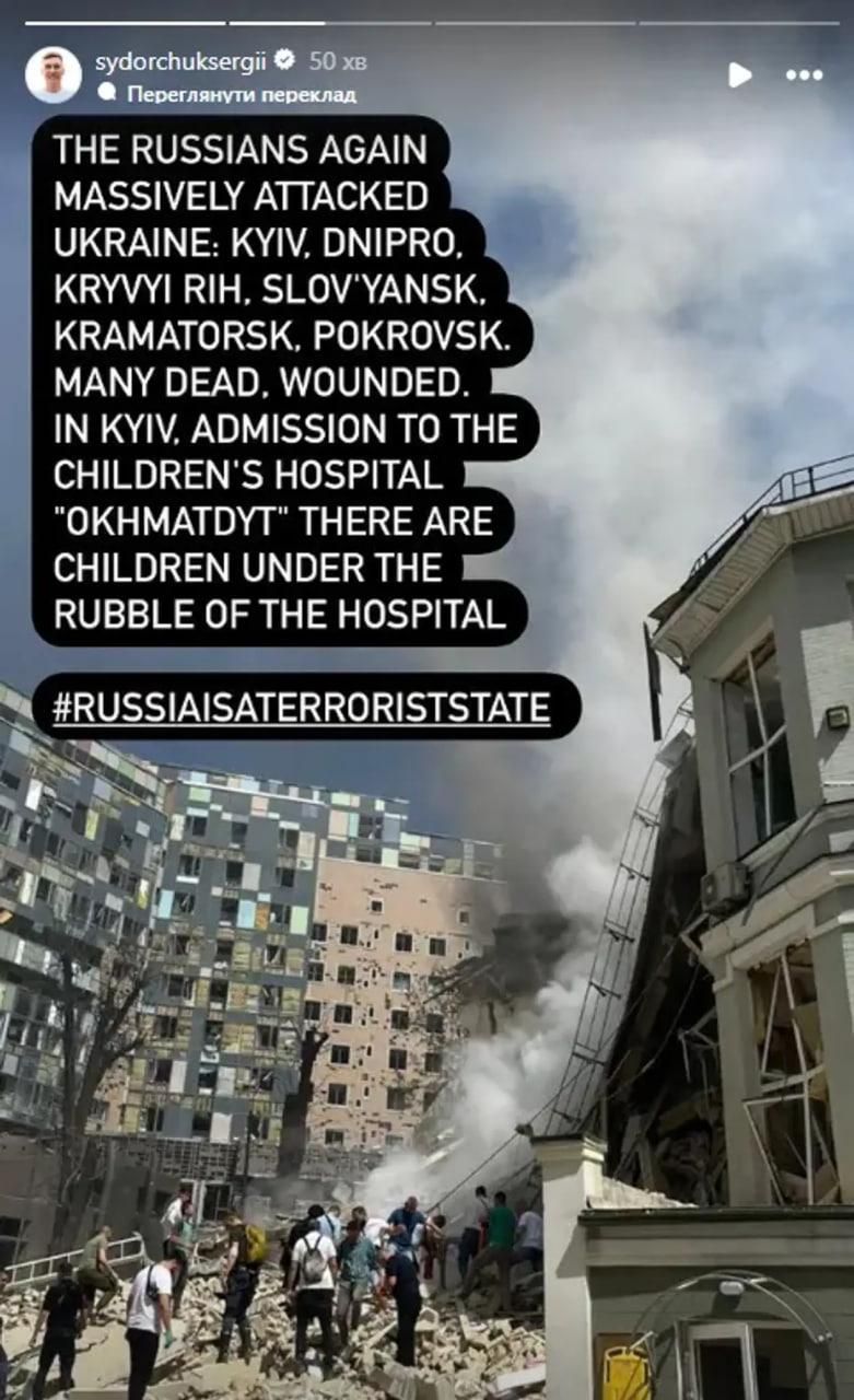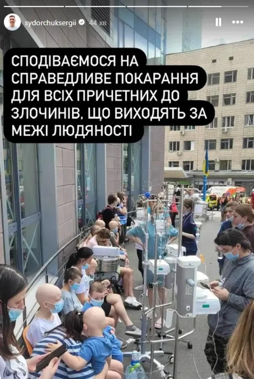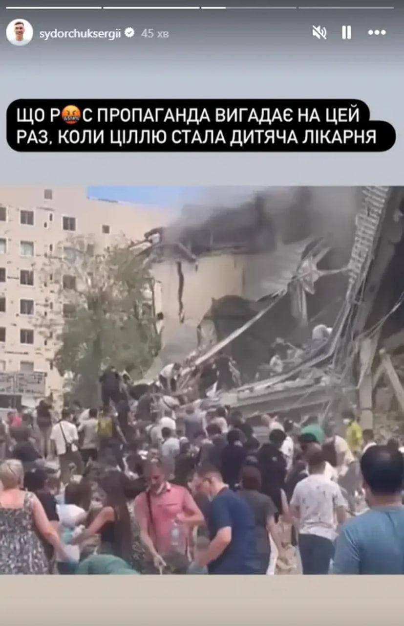 Що російська пропаганда вигадає на цей раз, коли ціллю стала дитяча лікарня? Сподіваємося на справедливе покарання для всіх причетних до злочинів, що виходять за межі людяності", – написав Сергій Сидорчук на своїй сторінці в Instagram.