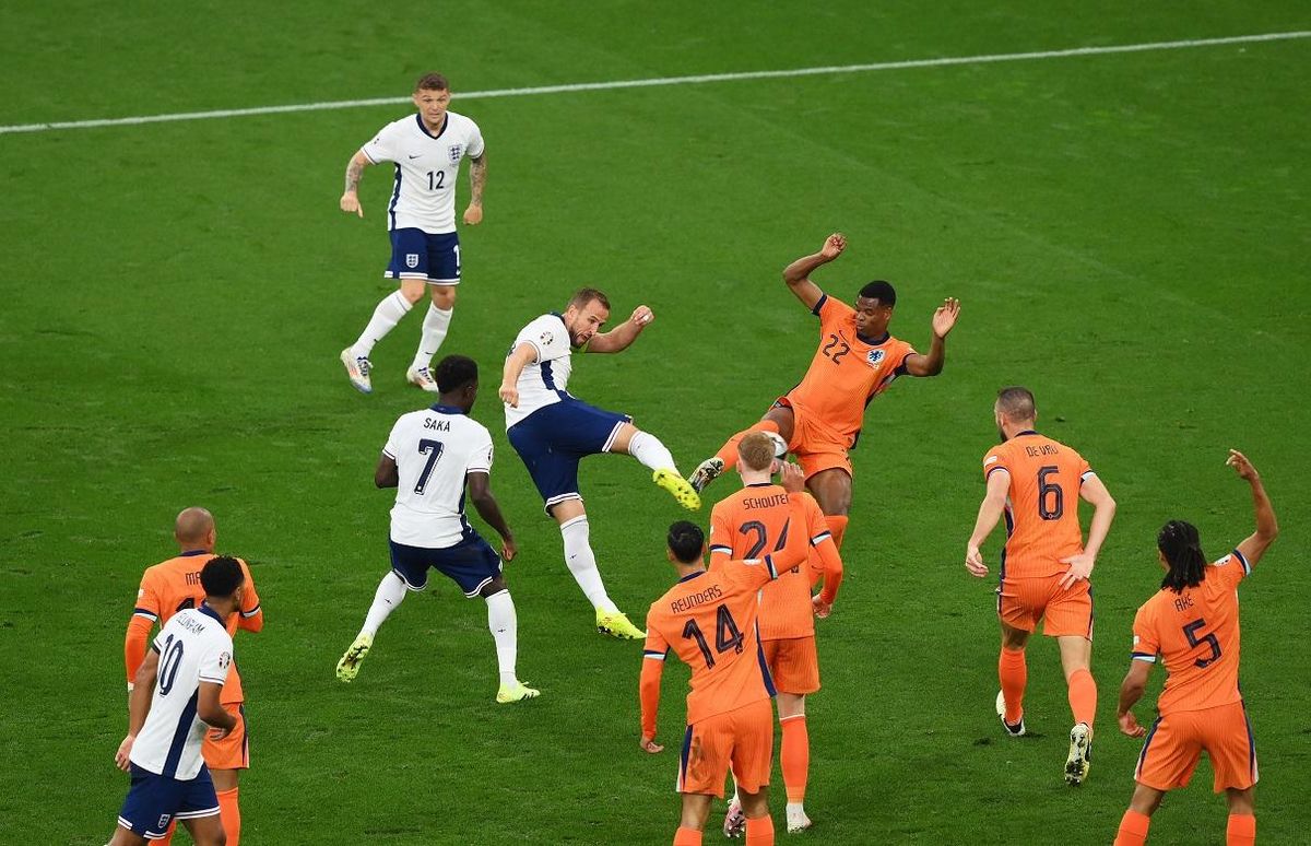 Англія відразу вмикнулась, видавши свій накращий відрізок на Євро. "Три леви" замтиснули суперника в його штрафному і доволі швидко відігрались. Щоправда, не без скандалу. Кейн вже встиг завдати неточного удару, а потім в муках скривився на газоні. VAR підтримав капітана англійців і покликав Фелікса Цвайєра дивитися повтор. Рефері вирішив, що дотику Дюмфріса вистачає для пенальті. Ох, скільки буде суперечок! Сам Кейн чітко реалізував 11-метровий.