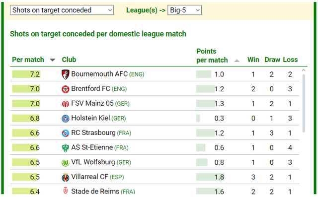 "Вишні" посідають перше місце за середньою кількістю допущених ударів у площину власних воріт за один поєдинок, підрахував статистичний портал CIES Football Obs.