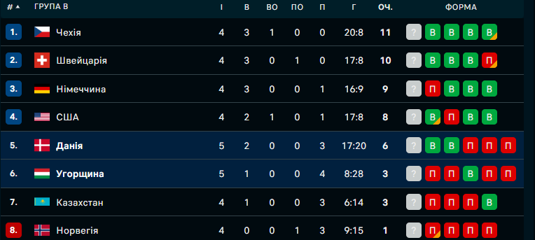 Угорщина – Данія – 2:8 (2:1, 0:3, 0:4)