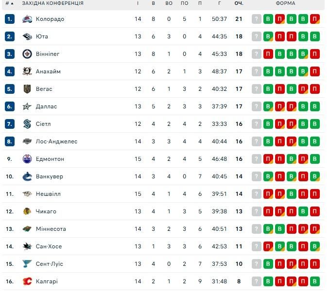 На перше місце у Східній конференції вибралося Колорадо, яке здолало Тампу-Бей. Лавини випереджають Вінніпег та Юту.