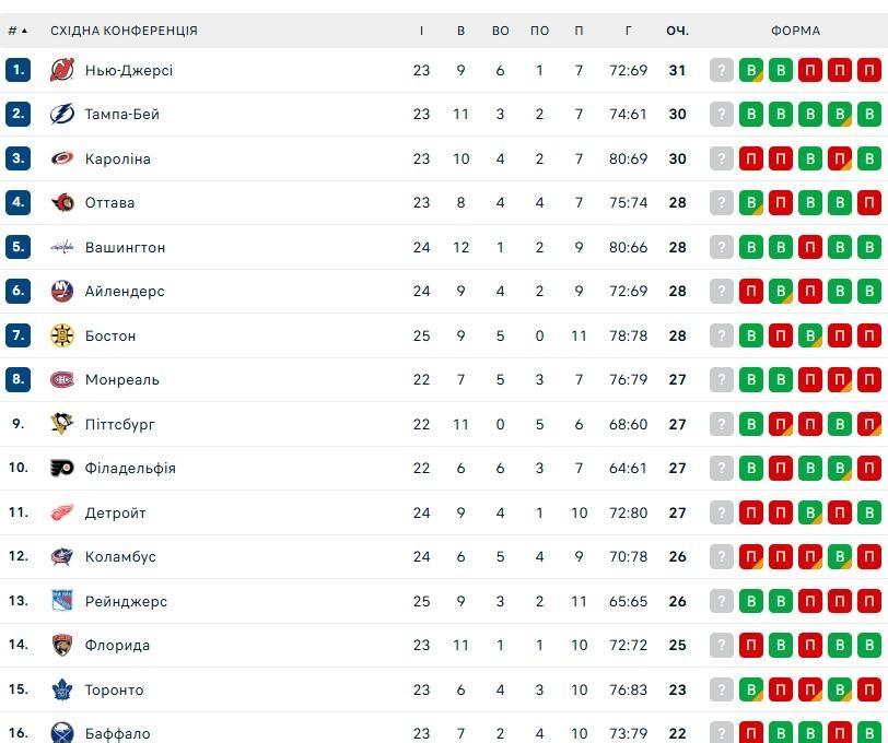 Лише на одне очко від Нью-Джерсі відстає Тампа Бей, яка здобула 5 поспіль перемогу. Цього разу Блискавки розтрощили Калгарі – 5:1.