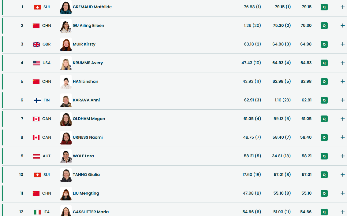 Під час другої спроби представниця України покращила результат до 50,78 бала, але цього не вистачило до потрапляння до топ-12. Суперниці набрали мінімум 54 бали. Перше місце залишилося за швейцаркою Матільдою Гремо, другою стала Ейлін Гу (Китай), у топ-3 потрапила й британка Кірсті Мьюїр.
