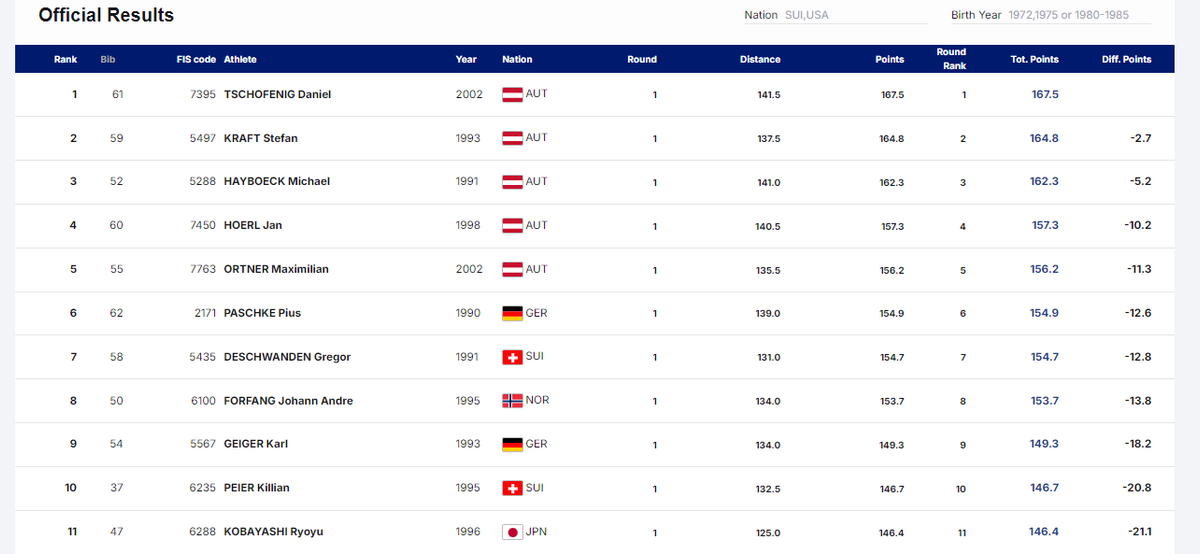 Перемогу у кваліфікації здобув австрієць Даніель Чофенг, який випередив своїх партнерів по команді – Штефана Крафта та Міхаеля Хайбьока.