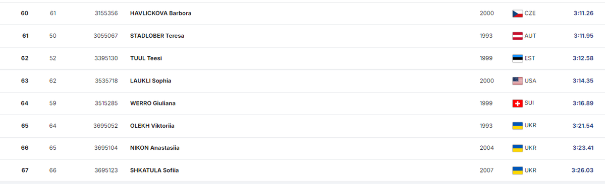 На жаль, подолати кваліфікацію українцям не вдалося ані серед жінок, ані серед чоловіків. У жіночих змаганнях українки посіли всі останні три місця: Вікторія Олех стала 65-ю, тоді як Анастасія Нікон та Софія Шкатула – 66-ю та 67-ю відповідно.