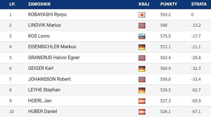 Третім став словенець Кос Ловро, у його активі 286 очок. Маріус Ліндвік посів тільки 4 позицію, але зумів зберегти 2 місце в загальному заліку.
