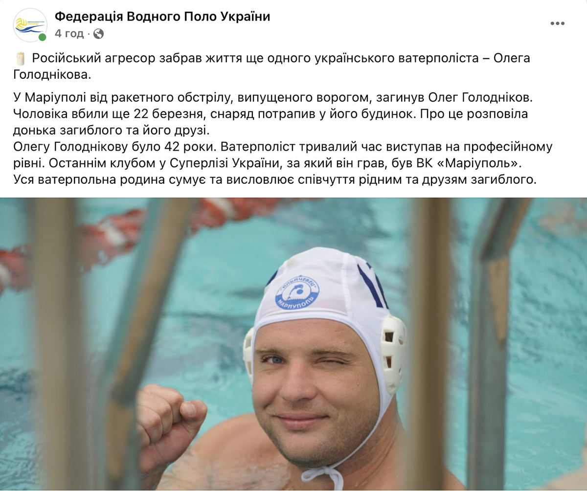 Спортсмен помер ще 22 березня від прямого потрапляння снаряду в його будинок, про це повідомила донька Голоднікова.