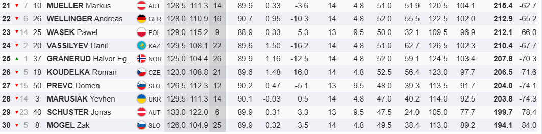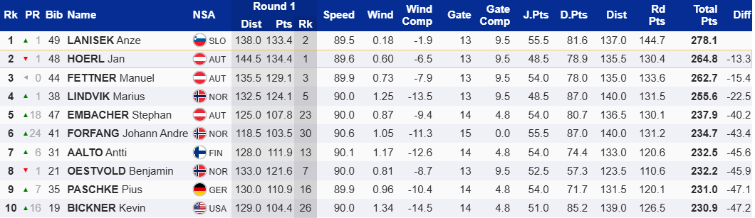 Чинний тріумфатор Турне чотирьох трамплінів Домен Превц зі Словенії теж показав поканий результат – він лише 27-й. Переміг його земляк Анже Ланісек, друге та третє місце в австрійців Яна Хьорла та Мануеля Феттнера.